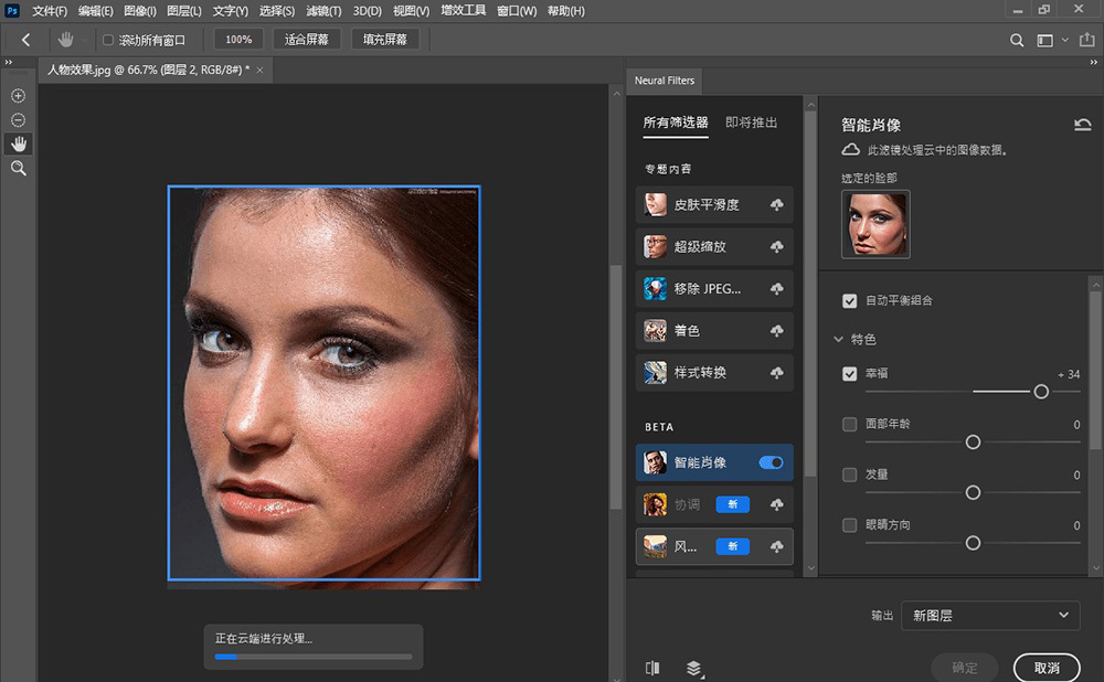 要求:登陆,联网在线下载组件(或者在网盘下载完整PS2022神经网络滤镜离线包)